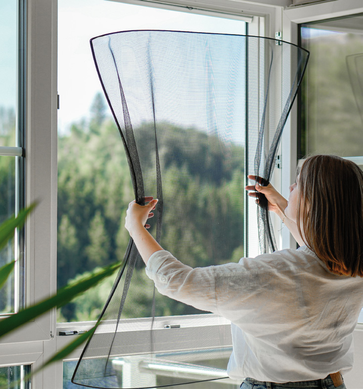 Alle Schweiker Insektenschutz-Systeme bestehen aus hochwertigen, UV- und witterungsbeständigen Materialien und werden individuell nach den Maßen